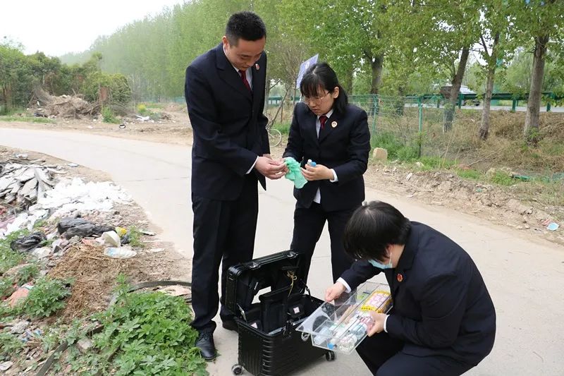2021年3月,安徽省蚌埠市淮上区检察院干警对现场水质进行快速检测。