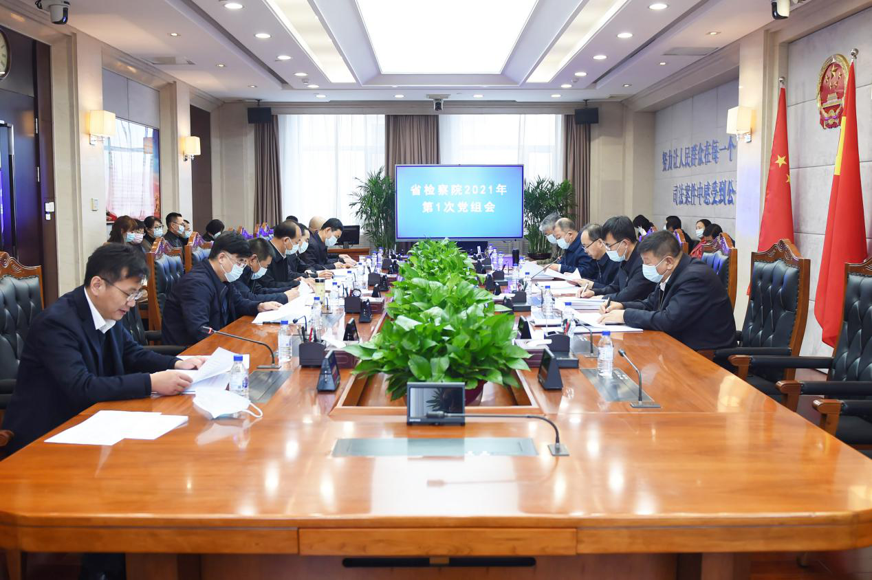 1月6日,省检察院召开2021年第1次党组会,传达学习习近平总书记在中央政治局民主生活会、中央农村工作会议和中央全面深化改革委员会第十七次会议上的重要讲话精神。省检察院党组书记、检察长尹伊君主持会议并研究部署落实措施。